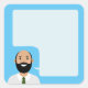 Cartoon image of a character with speech bubble. All elements can be moved, resized and all the colours can be changed. For more products featuring this character, look for Person 11 in the collections tab.