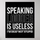Speaking Louder Is Useless Im Deaf Not Stupid Poster
