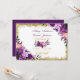 Watercolor Purple Ultra Violet Floral Gold Glitter Wedding Invitation Card - Purple Script - Purple Back