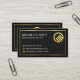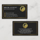 On the top left corner lies your prestigious name and the business name with a a gold global logo you can use to its right. Just below this are the contact details in their respective gold buttons.