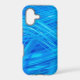 Light blue light crosses through a darker blue background, crossing other light paths to make a unique and pretty abstract pattern on this phone case.
