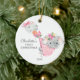Adorable Baby's 1st Christmas ornament featuring a stork with a baby girl elephant bundle. Room on the back of the ornament to add your baby photo.