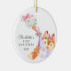 Adorable Baby's 1st Christmas ornament featuring a stork with a baby girl fox bundle. Room on the back of the ornament to add your baby photo.