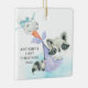 Adorable Baby's 1st Christmas ornament featuring a stork with a baby boy racoon bundle. Room on the back of the ornament to add your baby photo.