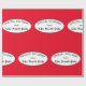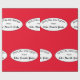 Special delivery from the north pole fun gift wrap, black and white typography tiled effect inside a bordered oval on a red coloured background.