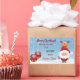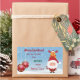 Cute and elegant Christmas gift sticker / label for kids with Santa in his red costume (holding a candy cane) and his favourite reindeer, Rudolph, behind him. The text reads "Merry Christmas! Please deliver to Jayden this special gift from Santa Claus" -- make sure you personalise the kid's name. You can also change the greeting, if you wish. The sticker also includes two red baubles with snowflakes, and a snowy landscape.