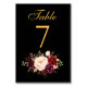 Special - Floral Burgundy Black Gold Wedding Table Number