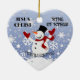 Personalise this heart shaped Christmas Ornament with your own 'special gift' photo and text. The opposite side design is a snowman with giant snowflakes falling down. The 'Merry Christmas' text can be replaced also.
