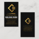 An all black minimalist cover features a set of faux gold lines near the card's centre. Right at the top is a gold "letter-C with 3 rebars" logo you can use. This is followed by the business name which is broken up into 2 colours, one gold and one white. Towards the base lies your prestigious name and the contact details.