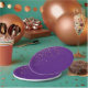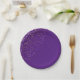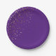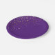 Shown is this golden petite stars printed paper plate in a custom Purple colour. Stars are not actual gold metallic or gold foiled, simply a gold-like colour. Stars angled on 3/4 of the plate.