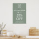 Highlight your promotion with our sage green poster. Ideal for announcing special offers and final sales, it grabs attention and promotes your event or sale effectively.