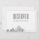 This unique wedding reserved sign is for a marriage taking place in the beautiful city of Pittsburgh and features a deco outline of the city skyline along with a spot for the seat occupant's name.