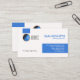 Overleaf, there are blue tabs at the top left and bottom right corners. All the card's info are at the midsection. At the top is the logo ; If you decide to upload a photo, the measurements are 1,000 x 1,000 pix. The business name comes next, followed by the contact details and finally a slogan tagline to personalise your design. This design has many options in order for you to customise the card. This is a great design, made for all sales, marketing and business development.
