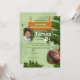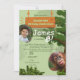 The front side of the invitation captures the attention with vibrant greens, natural textures, and a heartwarming image of Tara the orangutan, inviting guests to join in a "Wild Birthday Celebration." The playful banner, jungle-themed accents, and soft, earthy tones set the tone for a nature-loving celebration.
