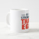 This mug design features a motivational quote, "BE STRONGER THAN EGO," displayed in a bold and impactful layout. The text is divided into three lines, with "BE STRONGER" written in a dark blue, bold sans-serif font, conveying a sense of seriousness and focus. Below, "THAN EGO" is highlighted in a bright red, distressed font, adding texture and visual interest. The contrasting colours and typography styles make the message stand out, encouraging resilience and self-improvement. The design's clean yet rugged aesthetic makes it perfect for a mug, inspiring positivity with every use.