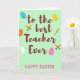This card features a central message in deep maroon, drawn in flowing lettering that sits slightly raised against a soft mint-green background. Around the words, speckled egg shapes in bright blue, sunny yellow, cheerful orange, and soft pink scatter like confetti, adding a light, friendly mood 🌷. Slender orange carrots with leafy green tops appear between the eggs, gently guiding your eye back toward the main message as if they’re leaning in together. One carrot is arranged as an exclamation mark, giving the layout a cheeky little wink without needing any extra characters. In the lower left, a simple white bunny silhouette 🐰 faces inward, as though watching over the message with a quiet, affectionate presence. Along the bottom edge, a short greeting appears in uppercase letters, set in a strong pink color that stands out from the mint background. The overall scene is framed by the scattered eggs and carrots, with the bunny anchored near the lower left corner and the pink text running neatly across the base.