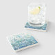 The coasters are gorgeous, a quality feel and heavy weight. They look like a precious archeological find. A rustic stone juxtaposed with a modern floral black and white print. I like the way the print goes slightly imperfect on the cut stone edges giving them a kind-of natural beauty.