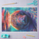 “Spectrum of Serenity” is a vibrant portrayal of a manatee, its body a canvas of brilliant colours that stand out in the ocean’s depths. The manatee’s gaze is direct and engaging, creating a connection with the viewer that is both intimate and profound. The bright hues of orange, pink, and blue that adorn its skin are a stark contrast to the usual grey tones associated with these gentle giants, adding an element of whimsy and fantasy to the image.