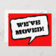 Cartoon speech bubble moving postcards for new home. Custom move text; We have moved! Add your new address on the back. Modern cute cards for new home or business location.