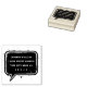 Return address rubber stamp featuring your name and return address inside a speech bubble surrounded by ink splatter.