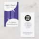 Two speech bubbles appear at the top and bottom, containing your name and details, lying over a colourfully striped violet background. A fun, informal type design that's suited for professions and businesses that involve communication or marketing. Adapted from a design by VectorPortal.com