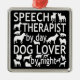 This dog lover Christmas ornament featuring the quote "Speech Therapist by Day Dog Lover by Night" with cute dog profiles is perfect for any Speech Therapist who loves dogs.