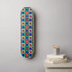 A Unique Skate Board Patterned Of Geometric Shapes Of Orange Blue And Black Colours