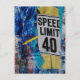 Speed Limit is mixed media collage Postcard