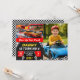 Get ready to race with this high-energy party design! A perfect match for kids who dream of fast cars and big adventures. Personalise this invitation with a photo of your little one!
