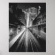 This black and white poster print captures the dramatic motion of an urban train speeding through the city surrounded by towering skyscrapers. The striking perspective and blurred motion create a sense of energy, movement, and modern life. Perfect for lovers of city photography, contemporary wall art, or anyone who wants to bring a bold architectural vibe into their home or office. This monochrome cityscape makes a powerful statement piece, ideal for living rooms, creative studios, or urban themed decor.