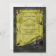A fun and whimsical Halloween party invite featuring a witch speeding through the night on her broomstick. She's flying so fast, her black cat can barely hang on! With scarf flying out behind her, and a tiny shrunken head hanging from the handle of her broom, this witch is definitely in a hurry! The back of the invitation features a green parchment scroll, with all the relevant details on a template for you to personalise, and there are fun elements such as a black cat, broomstick, more witches on broomsticks, witch's hat and a curious black rat on the back.
