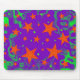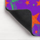 Mousepad with a swirling purple and green background scattered with magical, glowing orange and green stars. Created using digital techniques by Jess Perry.