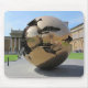 A unique gold metal sphere inside the Vatican City. A point of interest for tourists.