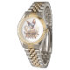 Sphynx Cat Mum silver and gold two-tone watch for Mother's day or any special occasion. An exclusive 'Sphynx Cat Art" design watch combines the luxury of gold with the classic appeal of silver, creating a unique, jewellery accessory that celebrates a special Sphynx cat mum.