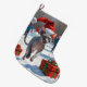 Sphynx Cat Running in Snow with Christmas Hat Large Christmas Stocking