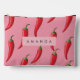 Spicy Red Chilli Pepper Pattern on Pink Background Accessory Pouch