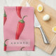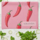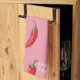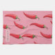 Spicy Red Chilli Pepper Pattern on Pink Background Tea Towel