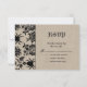 A spider damask pattern on an illustrated burlap background decorates this Halloween Wedding RSVP, giving it a rustic feel. It is shown on the basic paper; however, I recommend the weight and texture of the linen paper, to enhance the burlap look.