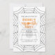 Spider web black white Halloween party Invitation. Personalise Hallow's eve invite with white spider web Halloween. With black text and grey spider.
