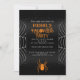 Spider web black white Halloween party Invitation. Personalise Hallow's eve invite with white spider web Halloween. With white text and orange spider.