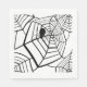A black on white spider web design decorates the spooky Halloween party paper napkin.