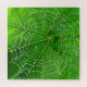 Spider Web & Rain Droplets on Green Leaf Designed Jigsaw Puzzle