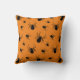 Black and Orange spider Halloween Pillow. Cool fun pattern with Spooky Halloween Home Décor. Custom orange with big and small scary crawling spiders.