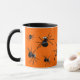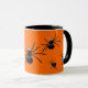 Use this silly bug-eyed spider mug when you go trick or treating on Halloween or any time of year. They won't scare anyone but you are sure to get lots of laughs and goodies. Black spiders with white eyes bugging out of their heads are scattered on an orange background.