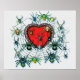 Multi-coloured spiders weave a web over a paper lace-trimmed valentine's day heart.