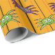 Cute purple and green spiders on a bright orange pattern wrapping paper design would be perfect for a Halloween party or gift. Chose from several different lengths and styles.
