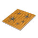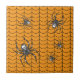 A bright orange background creates a perfectly Halloween-themed base for a repeating pattern of black web crawling with spiders. These spiders, modelled after the false widow, feature a bright white skull on their abdomens and other white markings on their body and legs. This tile can be framed to create a trivet or placed inside a wooden gift box lid. Tiles without a frame will also fit inside the large gift box to create a matching set.
