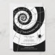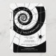Modern black and white halloween invitations with a chic black and white swirl decorated with a spiderweb and hanging spider. Customise with your own Halloween Party details. Perfect for fancy black and white Halloween dinner parties, Halloween birthday parties, or adult Halloween cocktail or office parties.