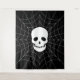 A dramatic Gothic styled vector drawn graphic skull and spiderweb. The template options allow you to change the background colour, add text and filter the artwork.