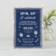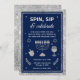 Raise a glass and spin the dreidel with this stylish "Spin, Sip & Celebrate" Hanukkah invitation. Featuring a deep navy background with shimmering silver faux glitter accents, this design blends tradition with modern flair. A sparkling menorah anchors the layout, surrounded by festive icons including a dreidel, wine glass, Stars of David and celebratory flourishes. Perfect for adult gatherings or lively community events, this invitation sets the tone for a night of cheer, games and glowing company.